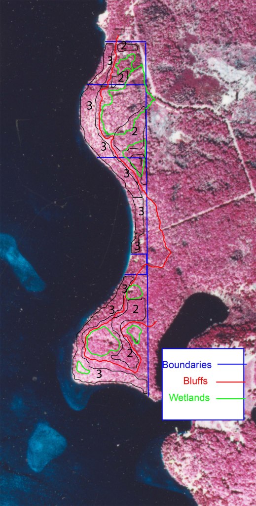 Management of this land is divided into three categories by the Stewardship Plan. Each of these management zones is indicated by black borders and numbers in the adjacent aerial photograph. The Minnesota DNR suggested the following actions.